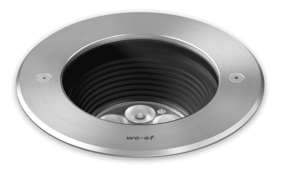 IP69. IK10+. Stainless steel construction including PCS hardware. Safety glass lens; max. load 5 tonnes. Luminaire can be driven over at low speed. Silicone rubber gasket. Anti-wick technology, equipped with a cable gland and 0.5 meters of flexible, PVC-free cable. Integral EC electronic converter. Advanced thermal management protects LEDs while optimising lumens output. Removable LED boards for upgrading. CAD-optimised optics for superior illumination and glare control. OLC® One LED Concept. Luminaire installation blockout and sealable junction box included in supply.