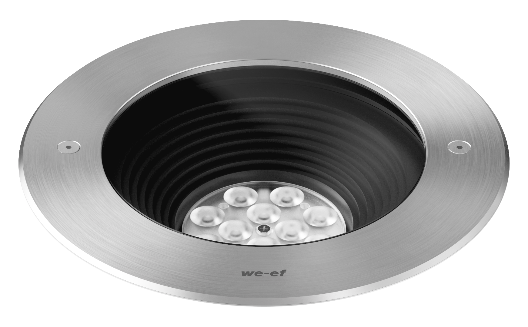 Tunable white. IP69. IK10+. Stainless steel construction including PCS hardware. Safety glass lens; max. load 5 tonnes. Luminaire can be driven over at low speed. Silicone rubber gasket. Anti-wick technology, equipped with a cable gland and 0.5 meters of flexible, PVC-free cable. Integral EC electronic converter. Advanced thermal management protects LEDs while optimising lumens output. Removable LED boards for upgrading. CAD-optimised optics for superior illumination and glare control. OLC® One LED Concept. LED circuit board with Tunable White Technology. DALI Interface. For other control interface options to suit specific project requirements, contact WE-EF. Luminaire installation blockout and sealable junction box included in supply.