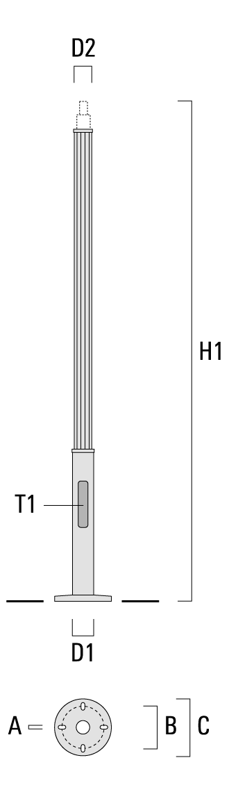 Impregnated hardwood top section with anodised aluminium core structure. Galvanised steel base section. 5CE+Primer superior corrosion protection, including PCS hardware. Powdercoat finish in black RAL 9004, grey aluminium RAL 9007, anthracite grey RAL 7016 or white RAL 9016. Surface mounting flange plate with die-cast aluminium cover to conceal mounting hardware. Service door. <br><br>