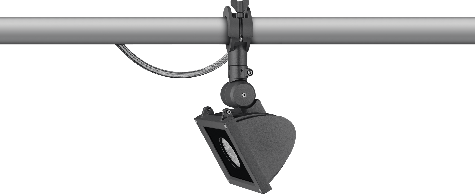 IP66, Class I. IK08. Marine-grade, die-cast aluminium alloy. 5CE superior corrosion protection including PCS hardware. Safety glass lens, hinged. Silicone CCG® Controlled Compression Gasket. Luminaire is factory-sealed and does not need to be opened during installation. Integral EC electronic converter in thermally-separated compartment. Advanced thermal management protects LEDs while optimising lumens output. CAD-optimised optics for superior illumination and glare control. OLC® One LED Concept. Including terminal box, for mounting on ø 48-60 mm pipes or space frames.