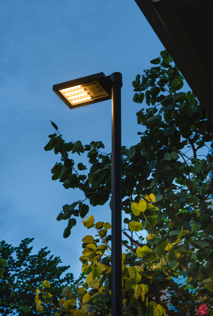 Hotel guests and visitors arriving by car will find a well-lit entrance and driveway lit by VFL530 street luminaires providing safety and comfort to drivers and guests. The simple geometric shape of the luminaires blends seamlessly with the modern building design.