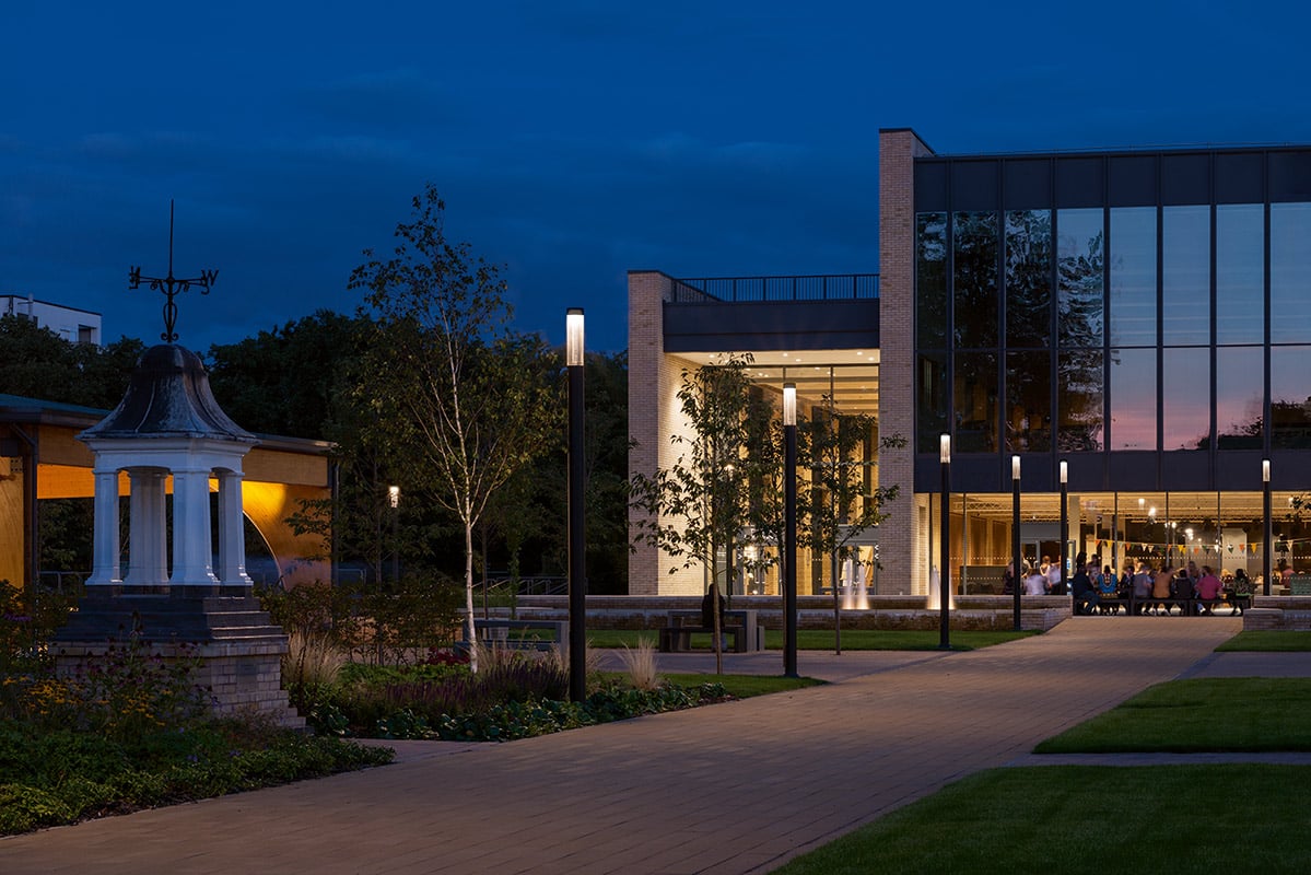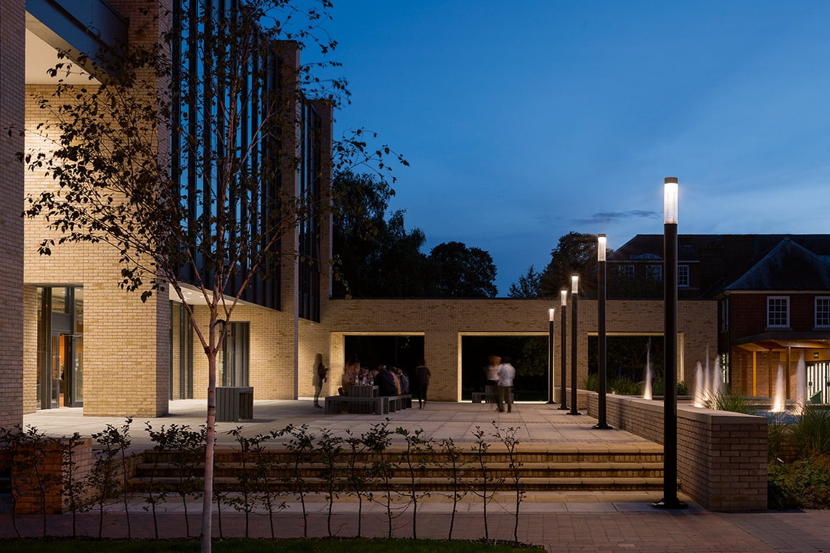 The range of materials, shapes and colours specified in the master plan, as part of the general design guidelines, was also taken into account in planning new exterior lighting for various areas of the campus. With their functional design language that focuses on basic geometric shapes, high-quality materials and sophisticated lighting technology, the luminaires from WE-EF meet these requirements perfectly. At the same time, they harmonise with the different architectural styles. For example, LTM440 LED-FT light columns illuminate the paths and areas close to the new amenities building, "The Barn", which includes a large restaurant as well as event areas and quiet spaces.