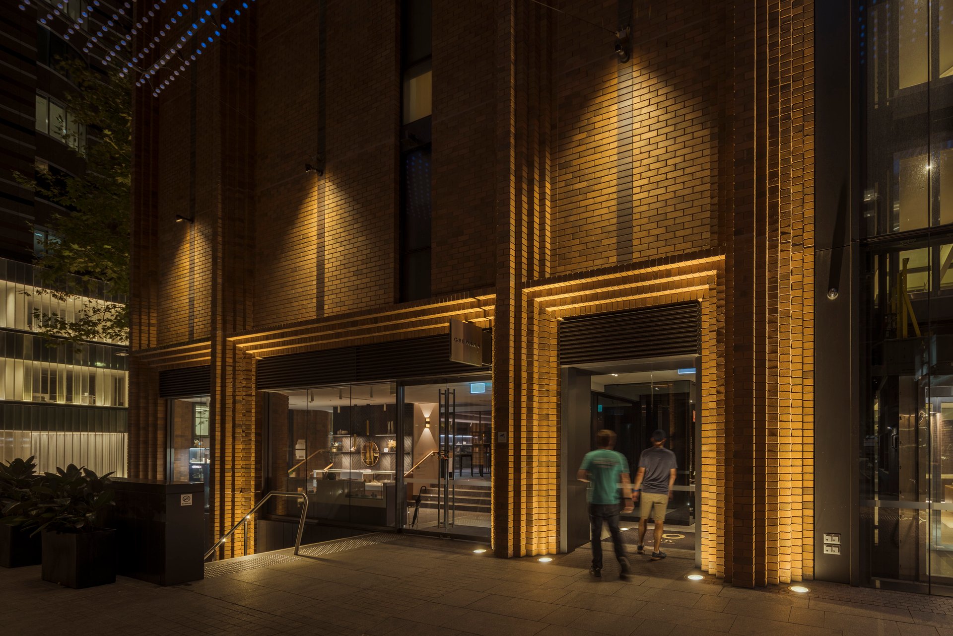 The 3000 K colour temperature selection was important in accentuating the earthiness of the red bricks. With less blue content than 4000 K which is traditionally used around the CBD, the warmer 3000 K colour, creates a more enchanting, welcoming feel while also bringing the warmth out of the architecture. At the same time, with less blue content, 3000 K is also less disruptive to local ecosystem at night.