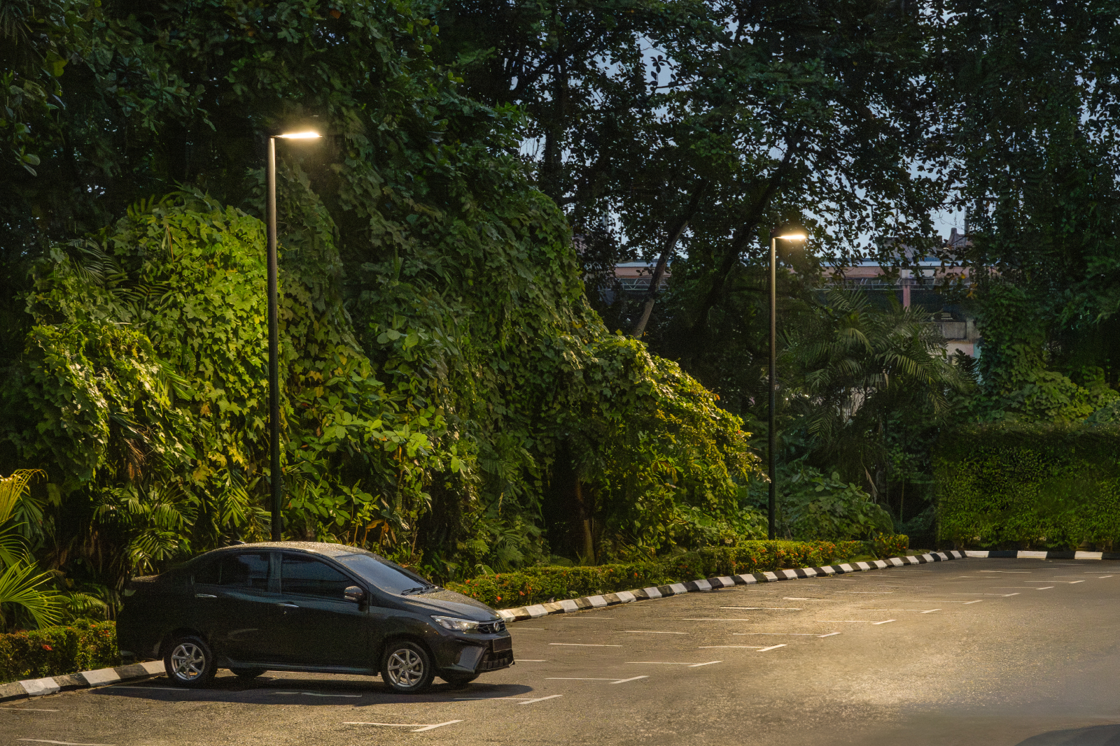 Along the pathway, CTY150 bollards in warm white were added to capture the cosy ambience while providing visibility for passersby. The 65 VFL540, [S60] asymmetric side throw in neutral white was scattered throughout the large garden area up to the car park, to ensure safety and uniform light output for visitors.