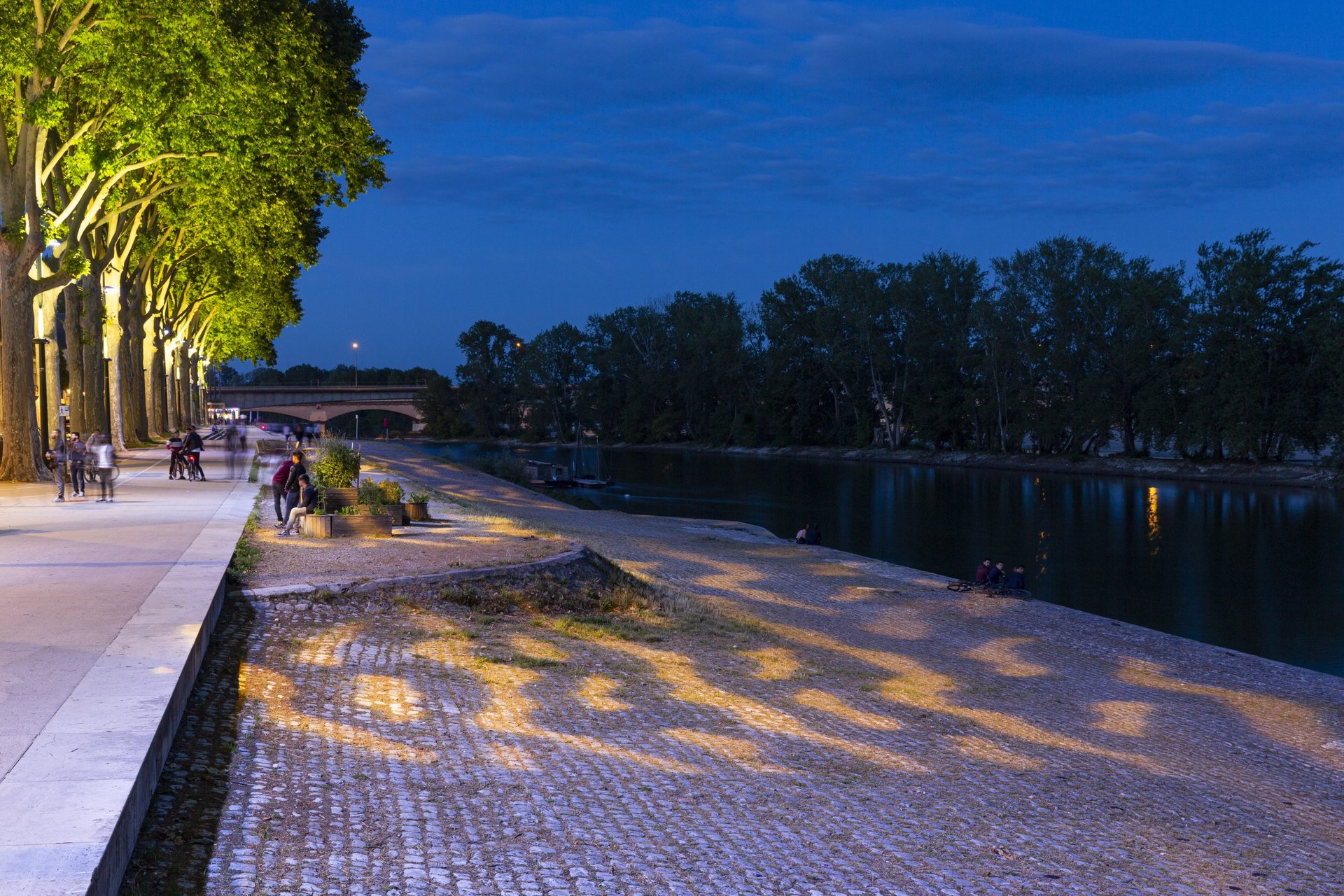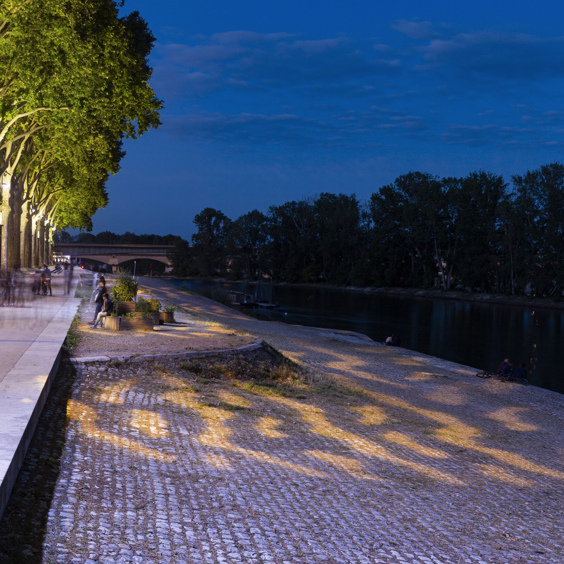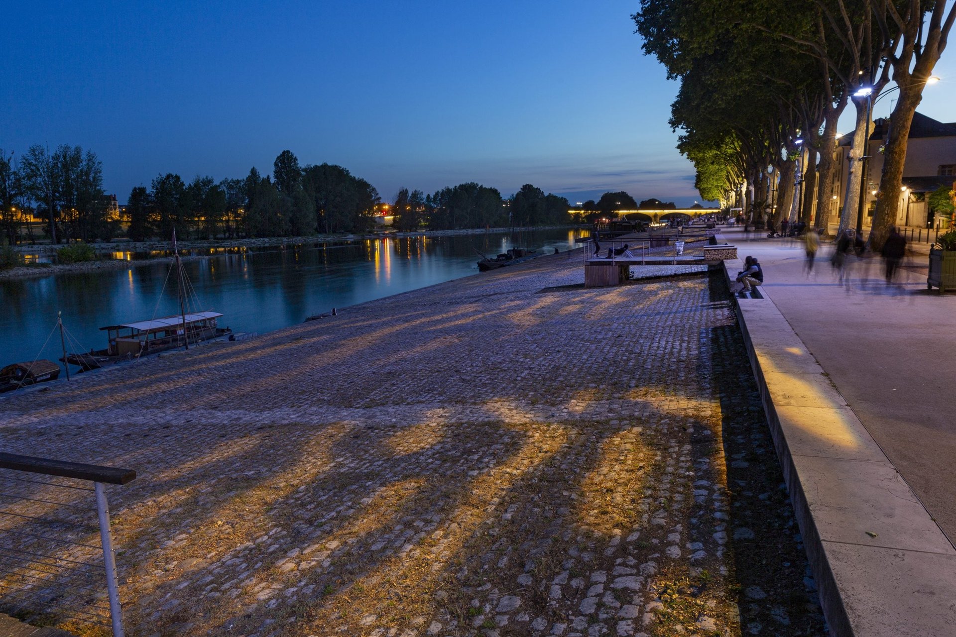 Le quai Châtelet d’Orléans a été réaménagé il y a peu. Des projecteurs FLC230-GOBO sont installés le long de l’avenue surplombant le quai. La projection au sol de vagues rappelle évidement le fleuve coulant dans la ville mais permet aussi de sécuriser les abords de la Loire sans aucune pollution lumineuse directe vers le cours d'eau.