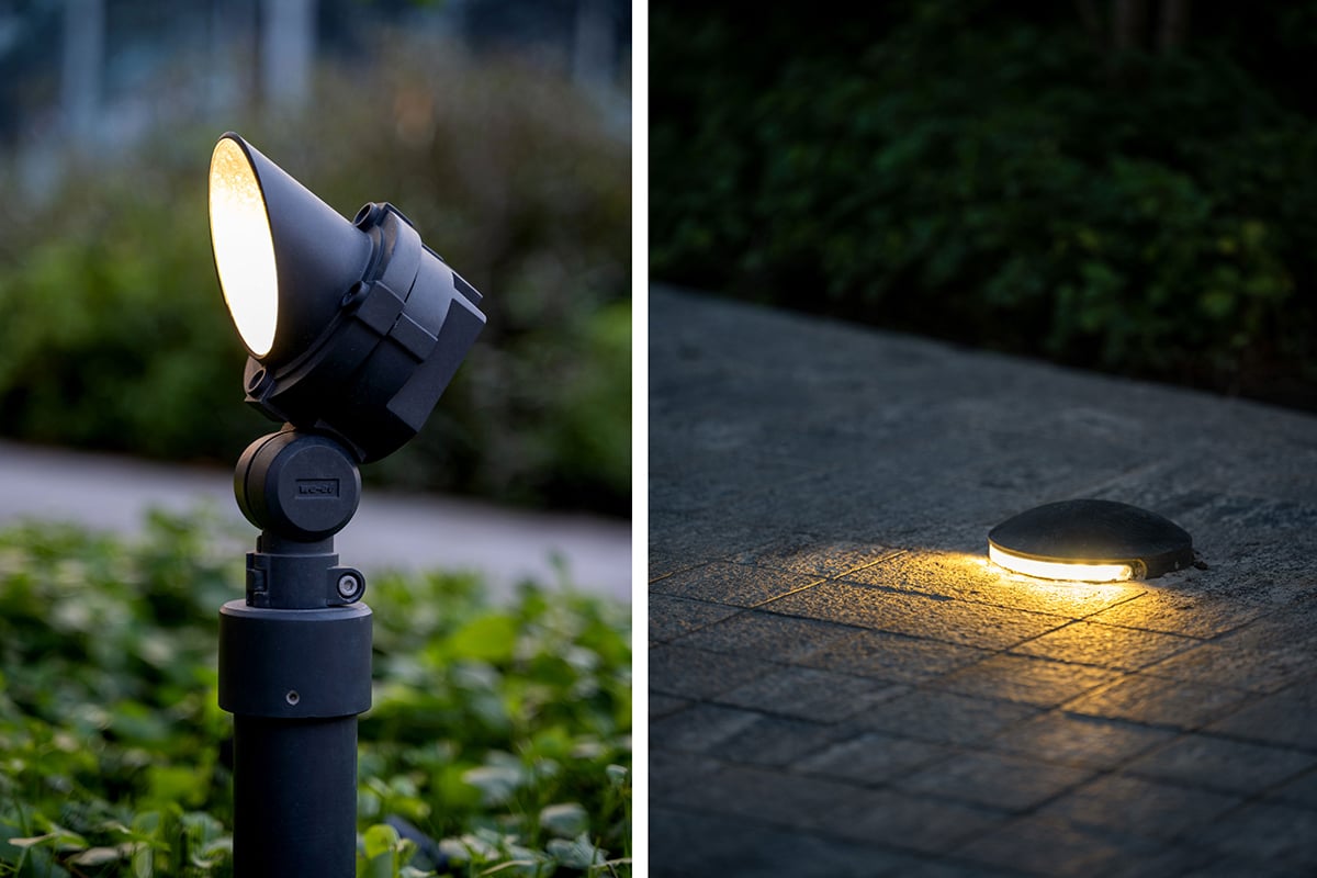 APLD chose WE-EF to illuminate three focus areas of the villa complex: the entrance, the main residential area and the clubhouse garden. The main objective is to create a pleasant and comfortable lighting environment while highlighting the landscape architecture with luminaires that are easy to install and maintain. Our FLC121 projectors come with drivers integrated in the ground spike made exclusively for the Mulberry Grove project making it an unparalleled choice for a landscape application. Along the entrance pathway, EFC120 marker lights were used for road marking for subtlety, instead of a typical pole installation.