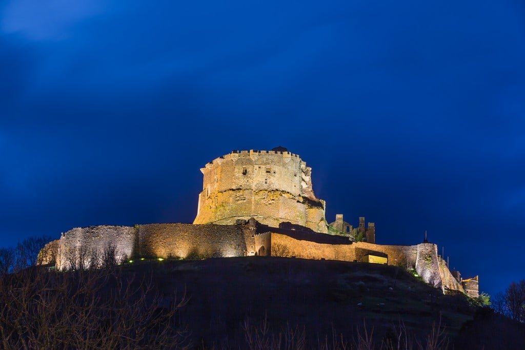 Le château-fort de Murol culmine à 1050m d’altitude, sa position dominante se devait d’être soulignée par une mise en valeur lumineuse soignée. Situé dans le Puy-de-Dôme, dans la chaine montagneuse des Mont d’Or, cet édifice est inscrit aux Monuments Historique depuis 1889.