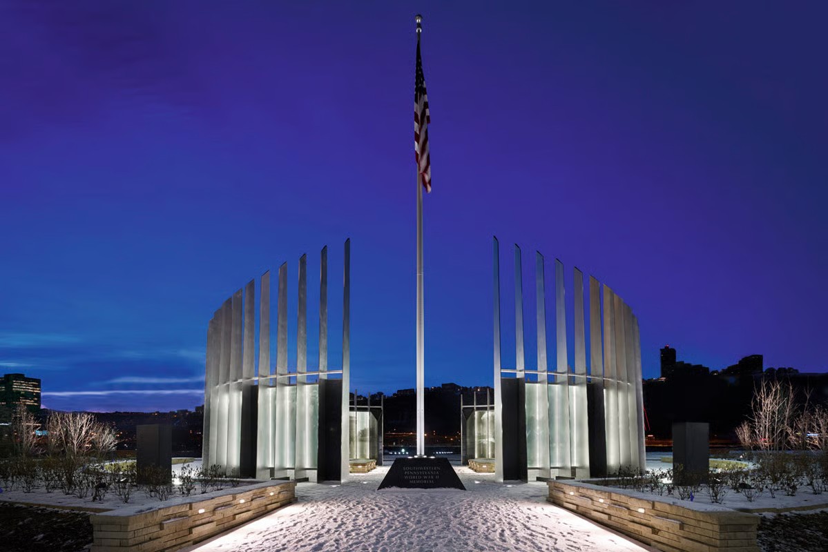 For the veterans of World War II, a long-standing wish has been fulfilled in the south-west of the US State of Pennsylvania. Their wartime services have now been honoured in the public domain with the Southwestern Pennsylvania World War II Memorial in Pittsburgh, which was completed in December 2013.