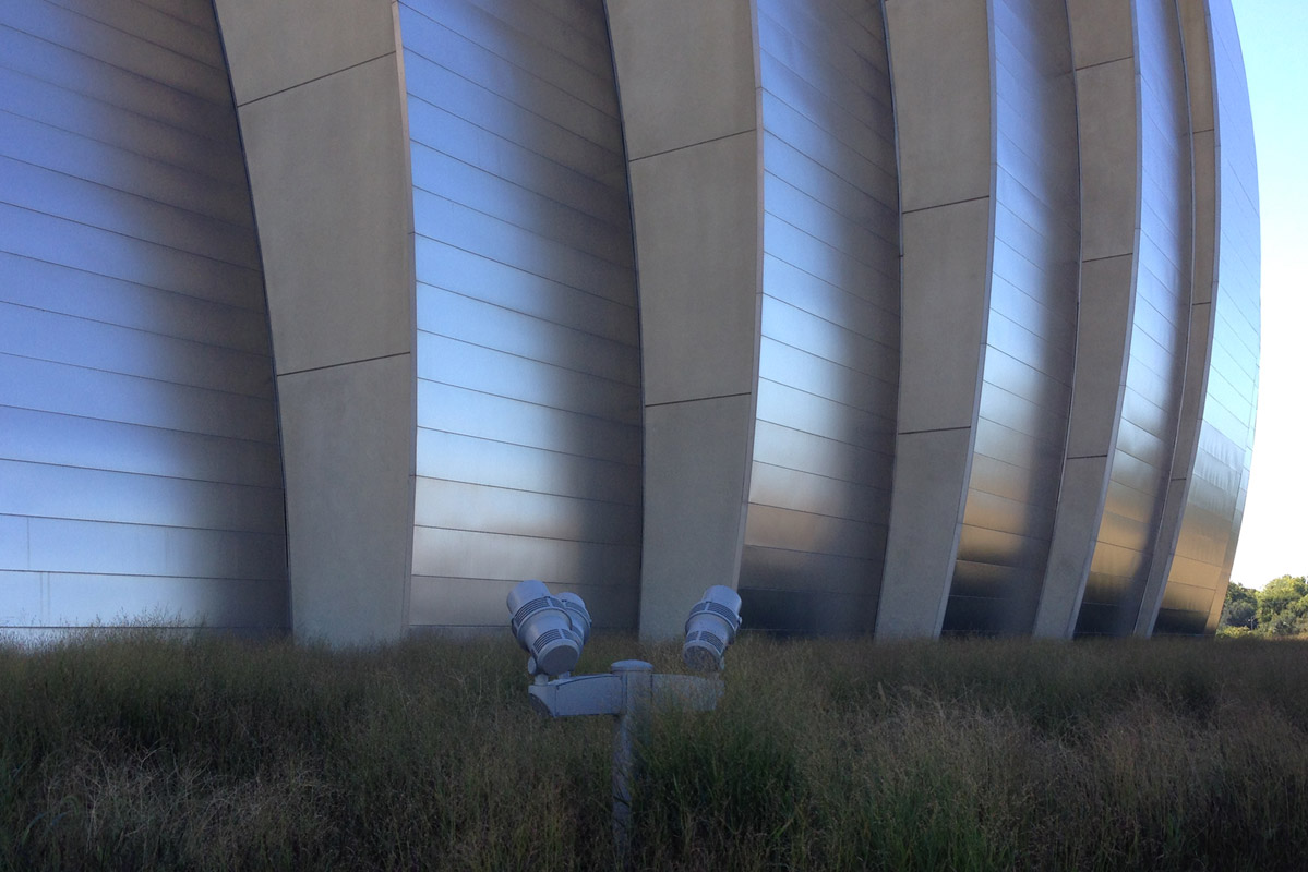 On the north façade of the Kauffman Center, stainless steel-sheathed arched walls impressively cover the performing halls. WE-EF FLC141 projectors are used to illuminate the pre-cast concrete perpendicular walls that punctuate the arches, highlighting the three-dimensionality of the structure. The projectors, which are discreetly mounted in the landscaping on custom triple mounting brackets and concealed by architectural niches, softly wash the concrete walls.