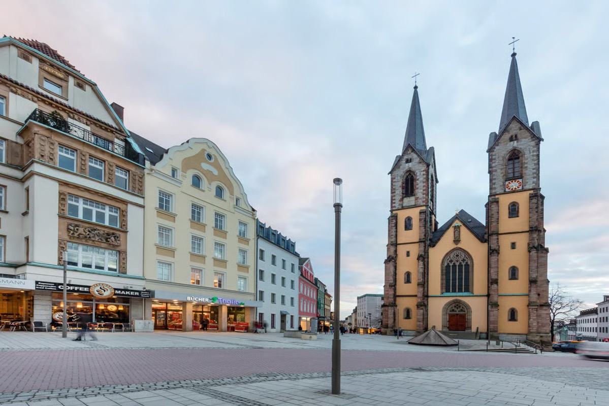 "Hof – at the top of Bavaria". This Upper Franconian town on the Saale River advertises itself with this double meaning slogan as it is also a top player in the illumination league with its first-rate street and area lighting. The new ZFT440 LED post mounted luminaires from WE-EF have been deployed and they give the pedestrian zone in the town centre a bright new look.