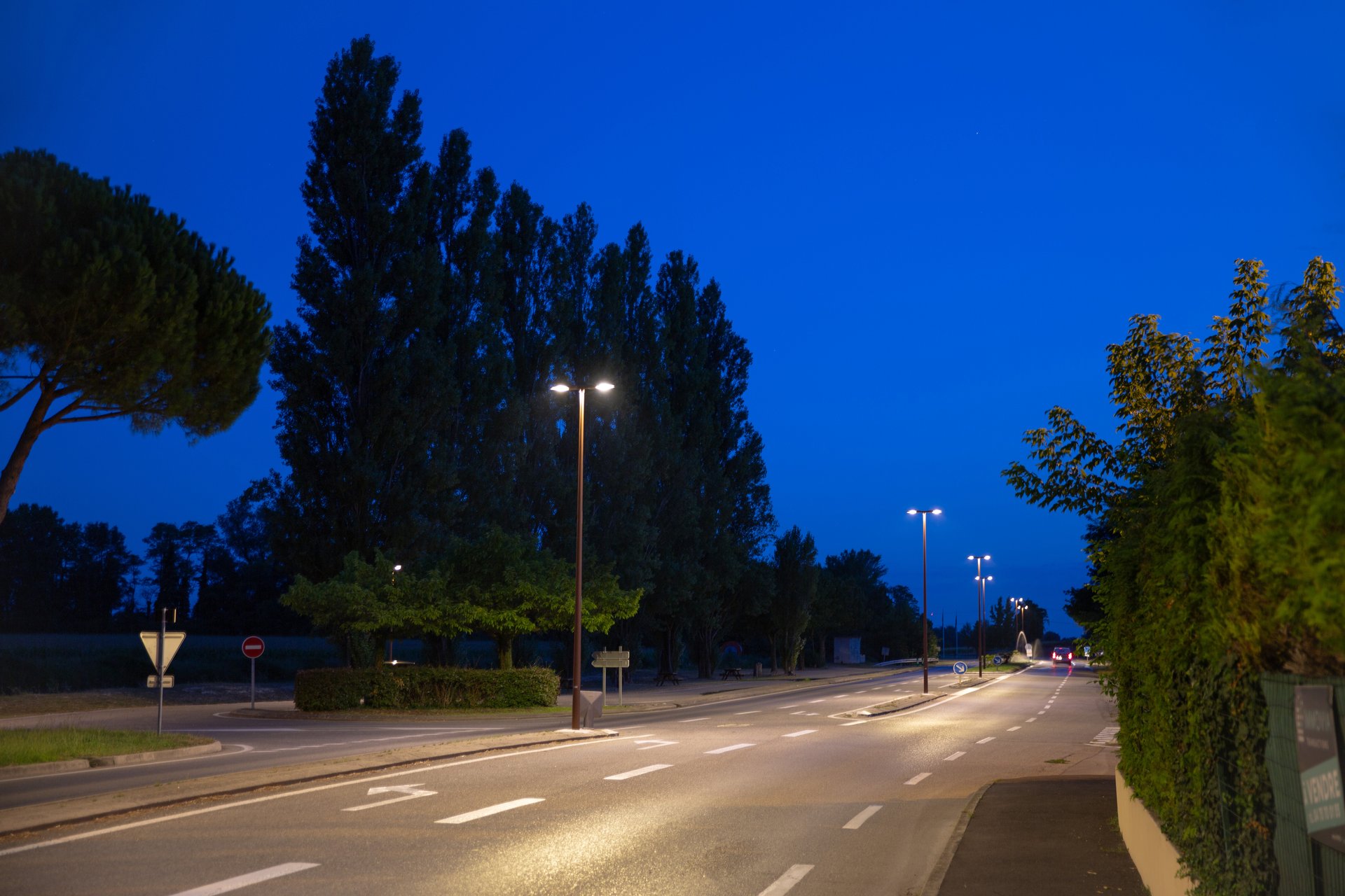 IP66, IK08, IRC70, Classe I ou classe II. Corps en fonte d’aluminium recyclé, injecté résistant à la corrosion. Protection 5CE en standard. Traitement bord de mer 5CE+PRIMER en option. Peinture poudre polyester. Système d’ouverture facile type charnière. Visserie imperdable inox avec traitement anti-couple galvanique Delta Seal®. Vasque IK08 (IK10 en option) conçue pour résister aux UV sans effet jaunissant. Optique ultra claire. Module de dissipation intégré, démontable et consigné pour une maintenance facilitée. Les modules LED (aux formats Zhaga 15 : dimensions et nombre de LED standardisé) sont interchangeables et évolutifs. Ces modules LED et le dissipateur sont consignés. Driver électronique intégré protection 10kV et certifié D4i avec connecteur Zhaga Book 18. Connecteur Zhaga Book 18 en option. Positionnement du connecteur Zhaga Book 18 possible sur le haut et/ou le bas du luminaire. Avec l'option Zhaga tous les flux lumineux sont identiques. Eclairage de routes et éclairage urbain. ULR = 0%. Code de flux CIE n°3. Ce luminaire respecte l’Arrêté TREP 1831126A. Températures de couleurs : 2200K, 2700K, 3000K en IRC70. Optique à déterminer à la commande : [A61], [P66], [R61], [S71], [S66], option coupe-flux sauf pour l’optique P66]. Orientation des optiques simple ou combiné ou inversée, sens du flux lumineux à déterminer (faisceau vers l’avant ou vers l’arrière). Éclairage intelligent disponible en option grâce à Easy Motion. Détection de présence technologie PIR où les lanternes fonctionnent indépendamment. Cette solution est un bon compromis pour adapter la lumière à vos besoins à moindre coût. Nous consulter. GARANTIE Garantie 5 ans : sur module LED et driver (voir les conditions WE-EF). Garantie 5+2ans : valable en France si le système «AstroDim» est programmé sur nos lanternes en usine avec un abaissement du courant à 40% de la valeur nominale pendant au moins la moitié du temps de fonctionnement. (voir les conditions WE-EF).