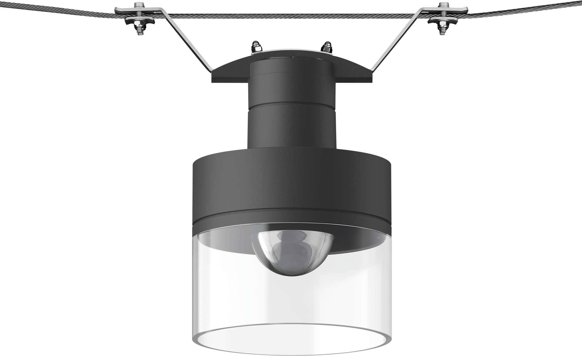 IP66. Classe I. Classe II sur demande. IK07. Corps en fonte d'aluminium injecté, traitement titanium. Visserie inox avec traitement PCS. Protection contre la corrosion 5CE. Joint silicone. Vasque polycarbonate résistante aux UV. Lentille diffusante 360° LED. Modules LED interchangeables individuellement. Version en 2200K disponible. À préciser lors de la demande de devis. Hauteur conseillée selon la puissance : 5 à 8m.