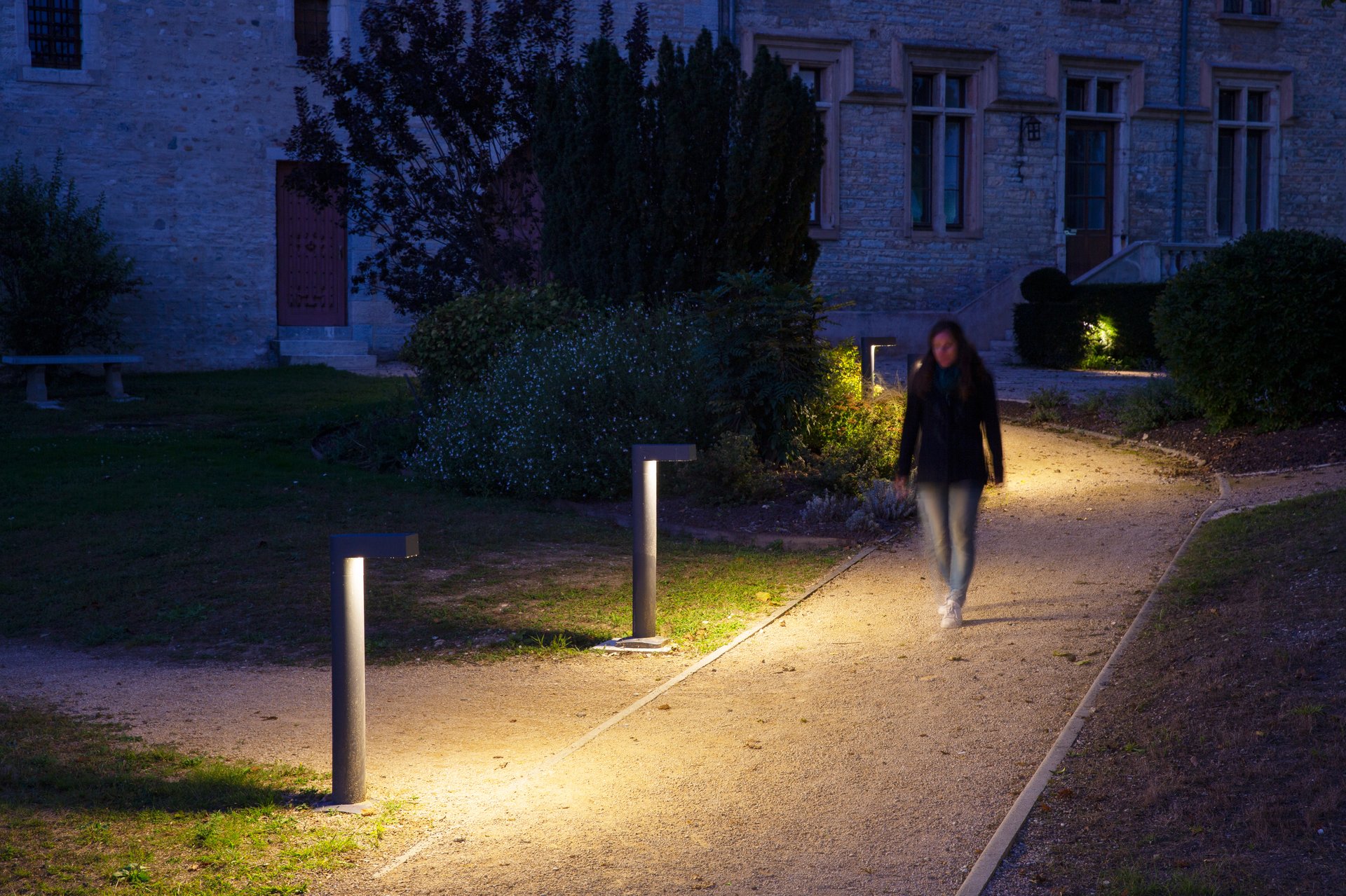 IP66, Classe I ou Classe II, IK10+ (correspond à une énergie de 50 joules). Luminaire en aluminium injecté sous pression, traitement anticorrosion avant peinture poudre polyester. Tube et semelle en aluminium. Position de la trappe de visite à gauche ou à droite au choix, ouverture par clé snake eyes. Dissipateur intégré. Visserie imperdable inox avec traitement anti couple galvanique Delta Seal®. Dissipateur intégré. Module LED Zhaga. Driver Zhaga DALI intégré. Températures de couleurs : 2700K, 3000K en IRC70 (2200K et 4000K sur demande). Optique cluster résistant aux UV, pas d’effet jaunissant. Optique : Walk. Borne dédiée aux LED, anti-vandalisme, anti-éblouissement. ULR = 0%. Code de flux CIE n°3. Ce luminaire respecte l’Arrêté TREP 1831126A. NORME Produit conforme à la norme européenne EN60598. MAINTENANCE Module LED remplaçable, dissipateur intégré. GARANTIE Garantie 5ans : sur module LED et driver (voir les conditions WE-EF). Garantie 5+2ans : valable en France si le système «AstroDim» est programmé sur nos lanternes et/ou bornes en usine avec un abaissement du courant à 40% de la valeur nominale pendant au moins la moitié du temps de fonctionnement. (voir les conditions WE-EF).
