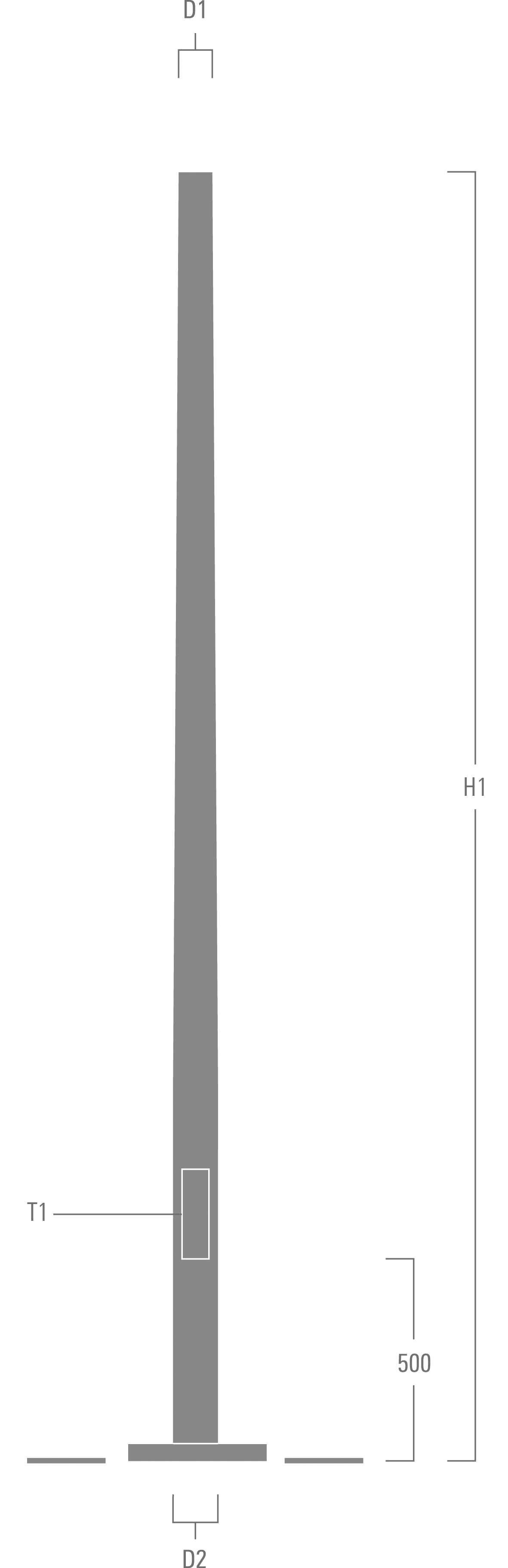 Réduction de 30% de matière grâce à l’utilisation d’un acier ultra résistant. 5CE, 5CE+Primer en option. Avec semelle et ouverture d'entrée de câble. Porte de visite avec vis de fermeture (à trois pans) en acier inoxydable et barrette interne pour pose d’un coffret pied de mât.