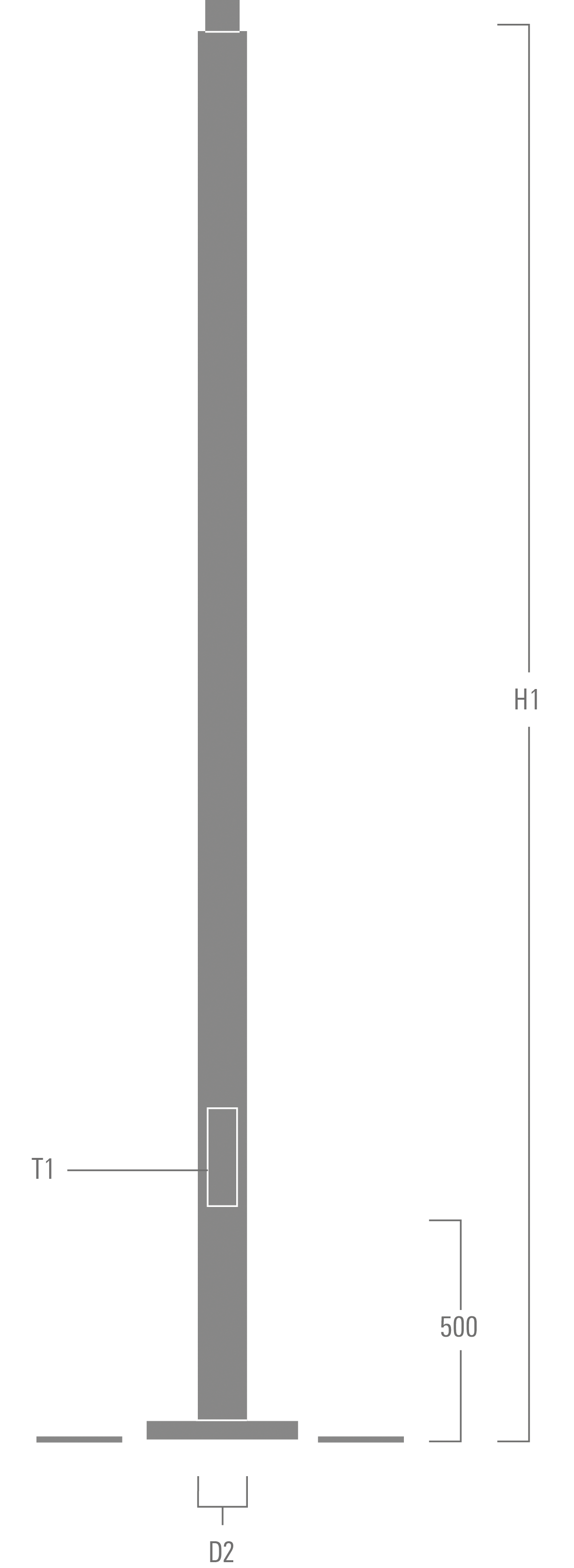Mât cylindrique (tubulaire) ø114mm en acier galvanisé peint. Épaisseur 3mm.