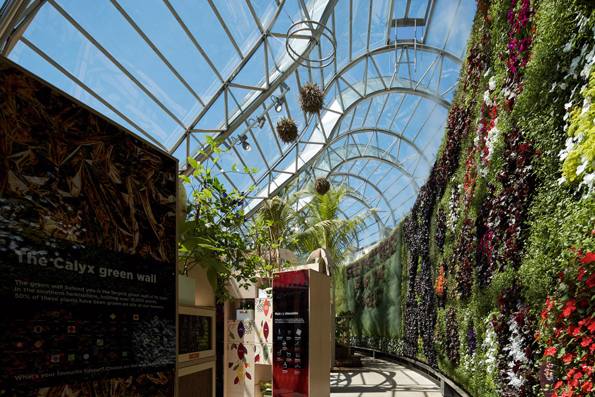 « Sweet Addiction » : quel choix de nom pertinent pour l’exposition inaugurale de « The Calyx » aux Jardins botaniques royaux de Sydney qui présente les différentes étapes de la culture du cacao – de la plantation jusqu’au moulin à cacao. Le thème de l’exposition est déjà très tentant, mais le nouveau lieu l’est encore plus : la nouvelle construction spectaculaire en verre a été conçue pour des expositions et offres de médiation ; ses espaces comprennent entre autres un foyer, des salles d’exposition, une boutique et bien sûr des serres. Dans ces dernières, il y règne une température allant jusqu’à 30 °C et un taux d’humidité dans l’air pouvant atteindre 70 %. Pour cette raison, une technologie résistante était nécessaire pour éclairer le Calyx.