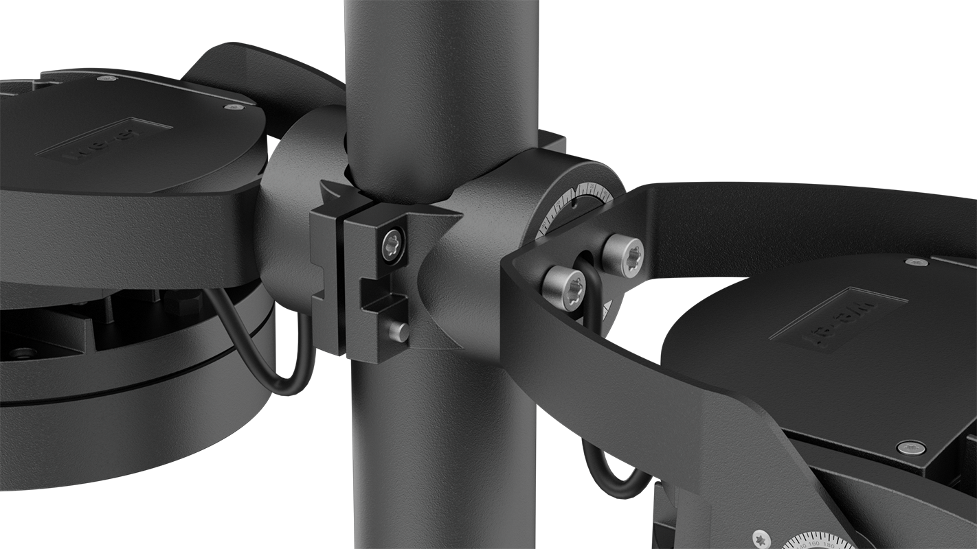 The clamps are available in four different sizes and are suitable for pole diameters of 76-89 mm, 82-109 mm, 102-114 mm or 114-133 mm. Long-term reliable corrosion protection is guaranteed by WE-EF's 5CE superior corrosion protection technology. This includes the use of PCS-coated stainless-steel fasteners to protect against electrochemical corrosion. The new pole clamps for the FLC product families 210, 220, 230, 240 and 260 are available for mounting a single projector or two projectors in a "double pack".