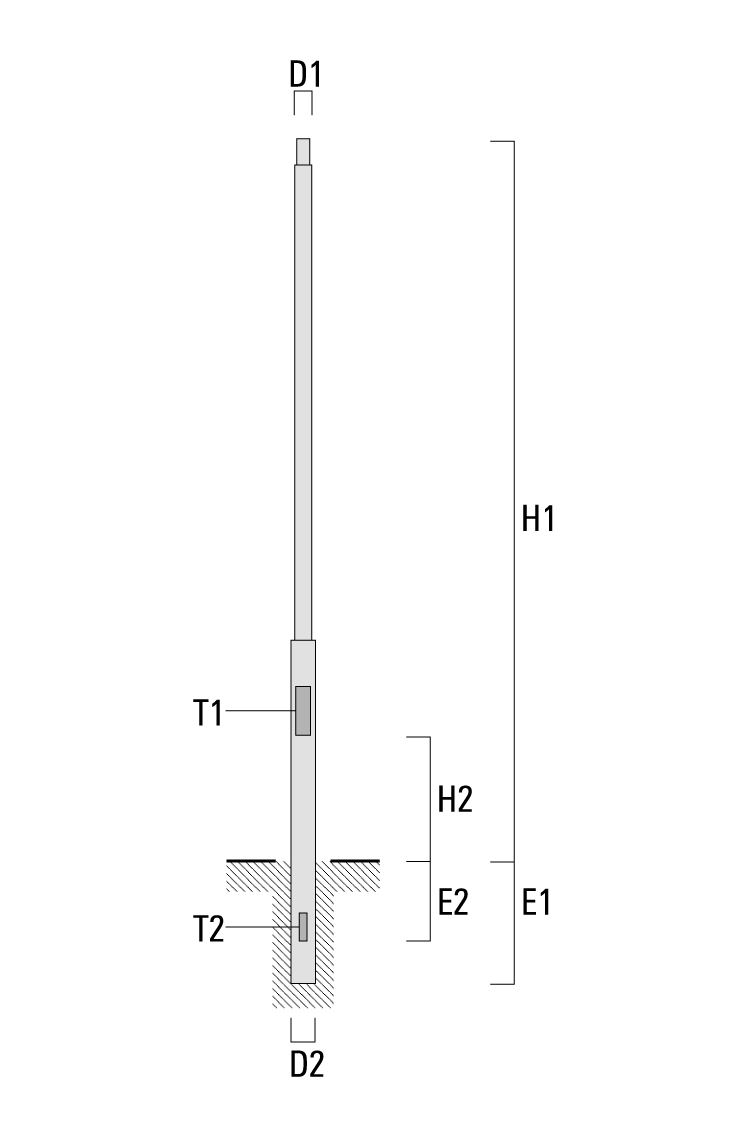 Tubular steel, one step. Hot dipped galvanised inside and out. Chrome-free conversion coating with superior powdercoat finish in RAL colour. Service door with stainless locking screw. Suitable for one cable connecting box. Standard version with planted root and cable entry hole. Please specify RAL colour reference number according to the WE-EF RAL Colour Chart. Special version with surface mounting flange plate is available on request.