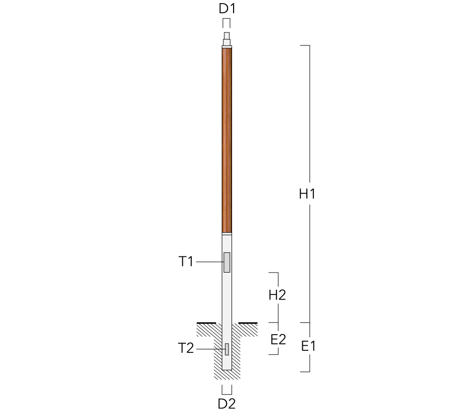 Mahogany. Base section tubular steel. Hot dipped galvanised inside and out. Chrome-free conversion coating with superior powdercoat finish in RAL colour. Including spigot. Service door with stainless locking screw. Suitable for one cable connecting box. Standard version with planted root and cable entry hole. Special version with surface mounting flange plate is available on request.