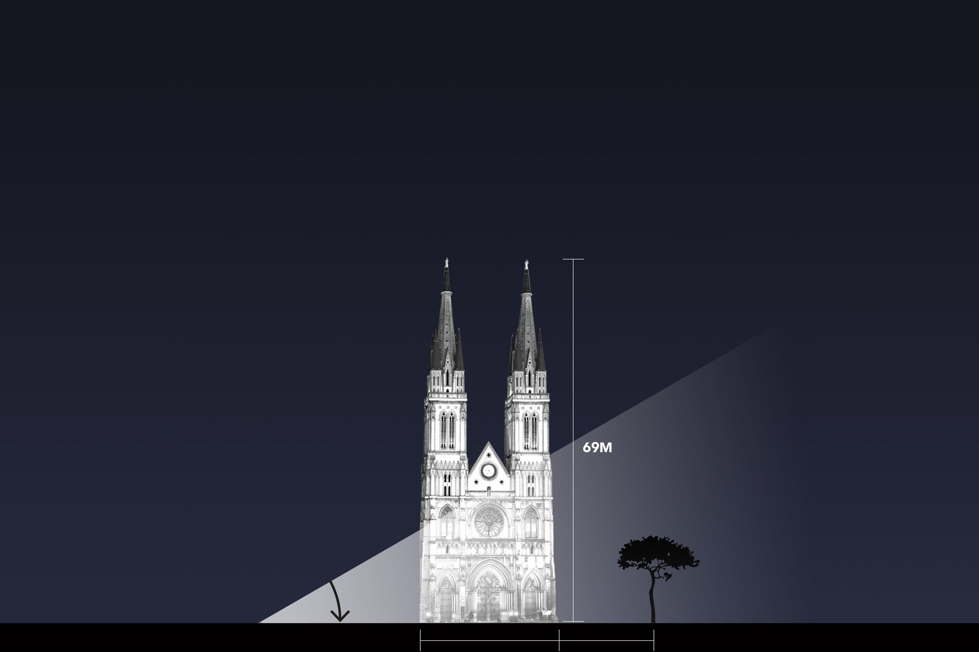 Framing is a specific lighting technique used to isolate the shape of an object or architectural details to be highlighted. This technique is valuable for avoiding light pollution by enabling targeted illumination. There are two types of framing: framing with a knife accessory for basic shapes, and framing using GOBO cropping for complex shapes.