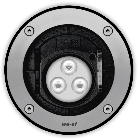 IP69K. Class I. IK10+. Stainless steel construction. PCS hardware. Silicone CCG® Controlled Compression Gasket. Safety glass lens; max load 5.5 tons (11,000 lbs). Luminaire can be driven over at low speed. Cable gland with spiral cable bending protection. Factory-sealed termination chamber complete with cable gland and 3 ft of flexible PVC-free, gel-impregnated anti-wicking cable. CAD-optimized optics for superior illumination and glare control. Integral driver in thermally separated compartment. OLC® One LED Concept. Factory-installed LED circuit board. Gimbal mounted, 355° rotatable and 20° tiltable. 'No tool' removable gear/lens tray. Suitable for flush installation in concrete or earth. The concrete-pour installation blockout is supplied as standard with luminaire. Specify product with 7 Digit product code – Finish Color. Accessories, such as mounting, optical, and electrical, must be specified separately. Example: XXX-XXXX-9004 (Black) + XXX-XXXX (Accessory 1)