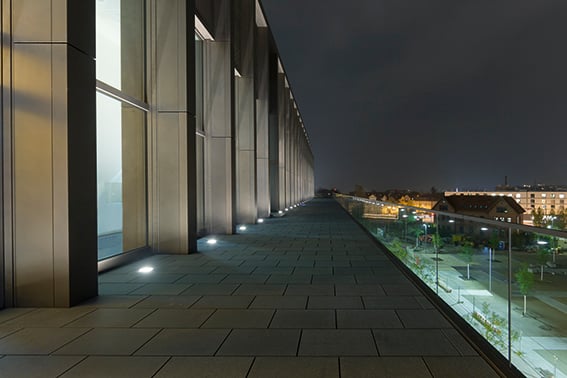 IP69K. Class I. IK10+. Stainless steel construction. PCS hardware. Optional with Anti-Slip ceramic Coating ASC to DIN 51130 (Trip Classification 10) available on request. Silicone CCG® Controlled Compression Gasket. Safety glass lens; max load 5.5 tons (11,000 lbs). Luminaire can be driven over at low speed. Cable gland with spiral cable bending protection. Factory-sealed termination chamber complete with cable gland and 3 ft of flexible PVC-free, gel-impregnated anti-wicking cable. CAD-optimized optics for superior illumination and glare control. Integral driver in thermally separated compartment. OLC® One LED Concept. Factory-installed LED circuit board. 0-10V Dimming comes standard with luminaire. Gimbal mounted, 360° rotatable and 30° tiltable. 'No tool' removable gear/lens tray. Suitable for flush installation in concrete or earth. The concrete-pour installation blockout is supplied as standard with luminaire. Specify product with 7 Digit product code – Finish Color. Accessories, such as mounting, optical, and electrical, must be specified separately. Example: XXX-XXXX-9004 (Black) + XXX-XXXX (Accessory 1)