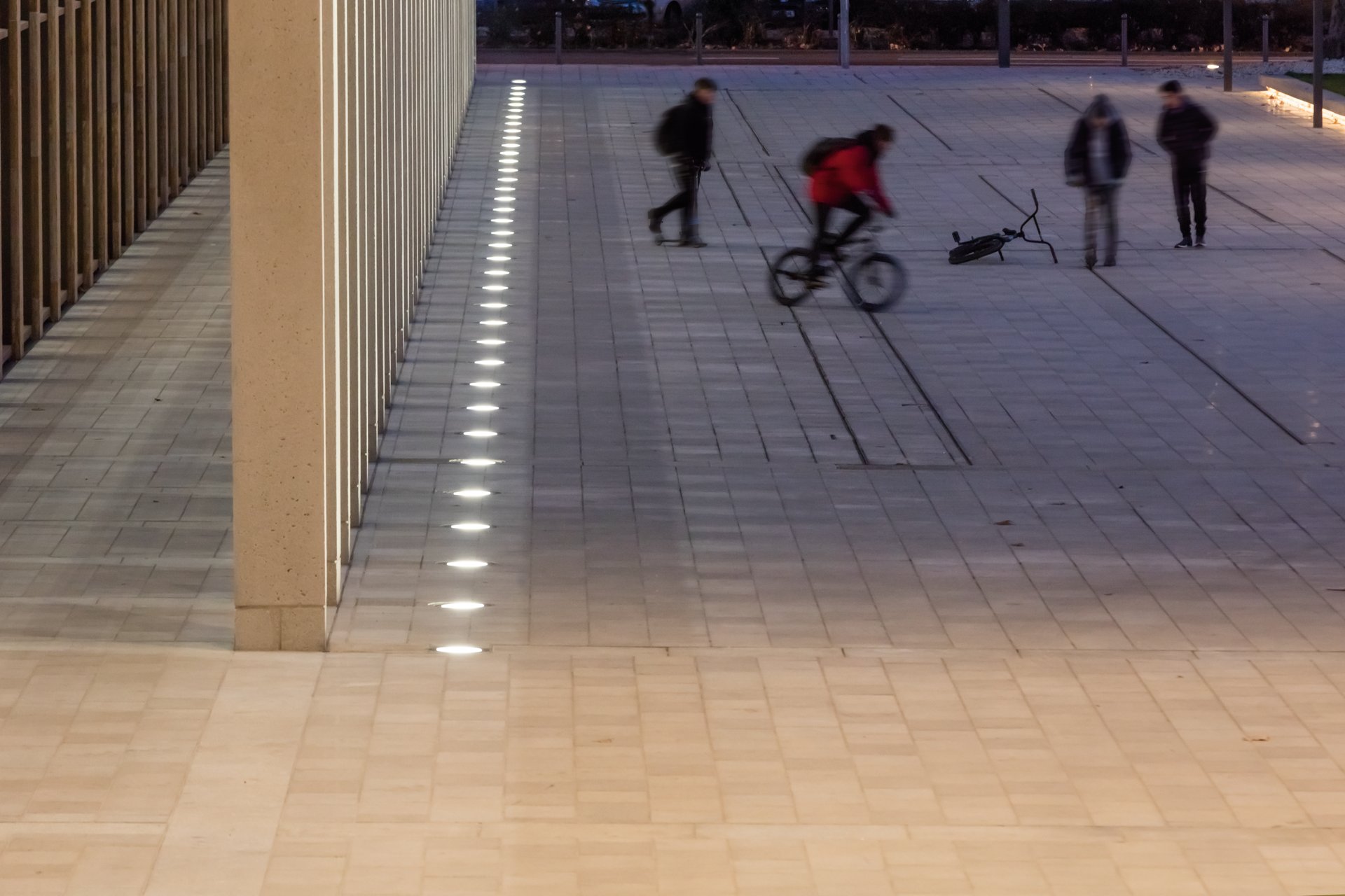 IP69K. Class I. IK10+. Stainless steel construction. PCS hardware. Optional with Anti-Slip ceramic Coating ASC to DIN 51130 (Trip Classification 10) available on request. Silicone CCG® Controlled Compression Gasket. Safety glass lens; max load 5.5 tons (11,000 lbs). Luminaire can be driven over at low speed. Cable gland with spiral cable bending protection. Factory-sealed termination chamber complete with cable gland and 3 ft of flexible PVC-free, gel-impregnated anti-wicking cable. CAD-optimized optics for superior illumination and glare control. Integral driver in thermally separated compartment. OLC® One LED Concept. Factory-installed LED circuit board. Gimbal mounted, 360° rotatable and 30° tiltable. 'No tool' removable gear/lens tray. The concrete-pour installation blockout is supplied as standard with luminaire. Specify product with 7 Digit product code – Finish Color. Accessories, such as mounting, optical, and electrical, must be specified separately. Example: XXX-XXXX-9004 (Black) + XXX-XXXX (Accessory 1)