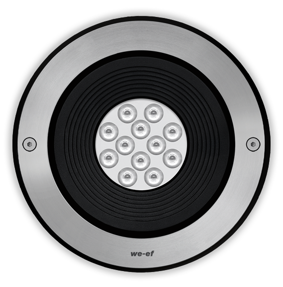 Tunable White. IP69K. Class I. IK10+. Stainless steel construction. PCS hardware. Silicone CCG® Controlled Compression Gasket. Safety glass lens; max load 5.5 tons (11,000 lbs). Luminaire can be driven over at low speed. Factory-sealed termination chamber complete with cable gland and 3 ft of flexible PVC-free, gel-impregnated anti-wicking cable. CAD-optimized optics for superior illumination and glare control. Integral driver. OLC® One LED Concept. LED circuit board. Tunable White technology. Advanced thermal management protects LEDs while optimizing lumens output. LED boards can be easily removed for upgrading. 0-10V Dimming. For other control interface options to suit specific project requirements, contact WE-EF. The concrete-pour installation blockout is supplied as standard with luminaire. Specify product with 7 Digit product code – Finish Color. Accessories, such as mounting, optical, and electrical, must be specified separately. Example: XXX-XXXX-9004 (Black). + XXX-XXXX (Accessory 1)