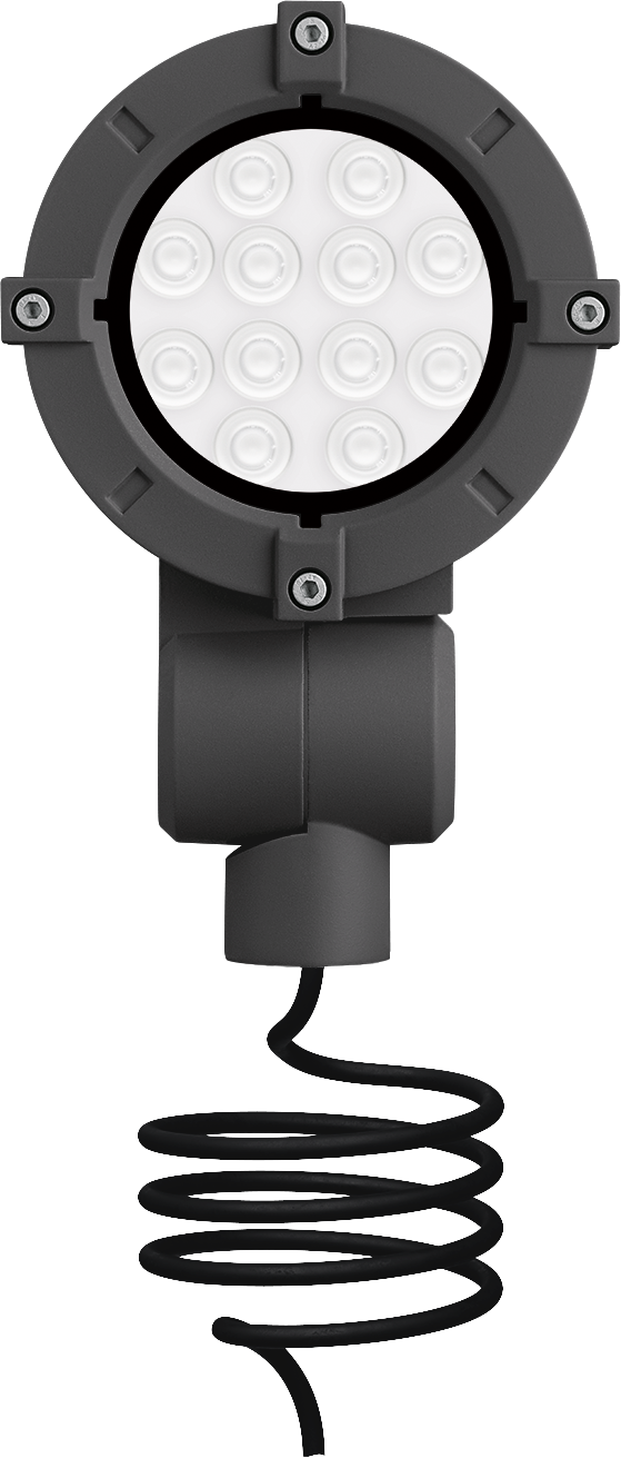 IP66. Class I. IK07. Marine-grade, die-cast aluminum alloy. 5CE superior corrosion protection including PCS hardware. Silicone CCG® Controlled Compression Gasket. Safety glass lens. Remote driver & cable (to length) ordered separately. CAD-optimized optics for superior illumination and glare control. OLC® One LED Concept. Factory-installed LED circuit board. Luminaire is factory-sealed and does not need to be opened during installation. Knuckle permits 350° horizontal and 90° vertical aiming of optics. Specify product with 7 Digit product code – Finish Color. Accessories, such as mounting, optical, and electrical, must be specified separately. Example: XXX-XXXX-9004 (Black) + XXX-XXXX (Accessory 1)